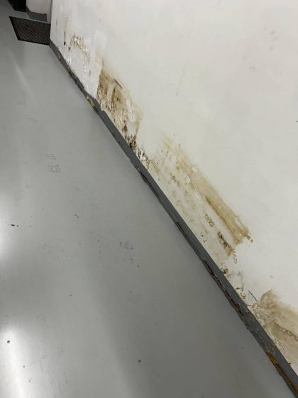 • Du salpêtre sur les murs, reconnaissable à son aspect poudreux blanc